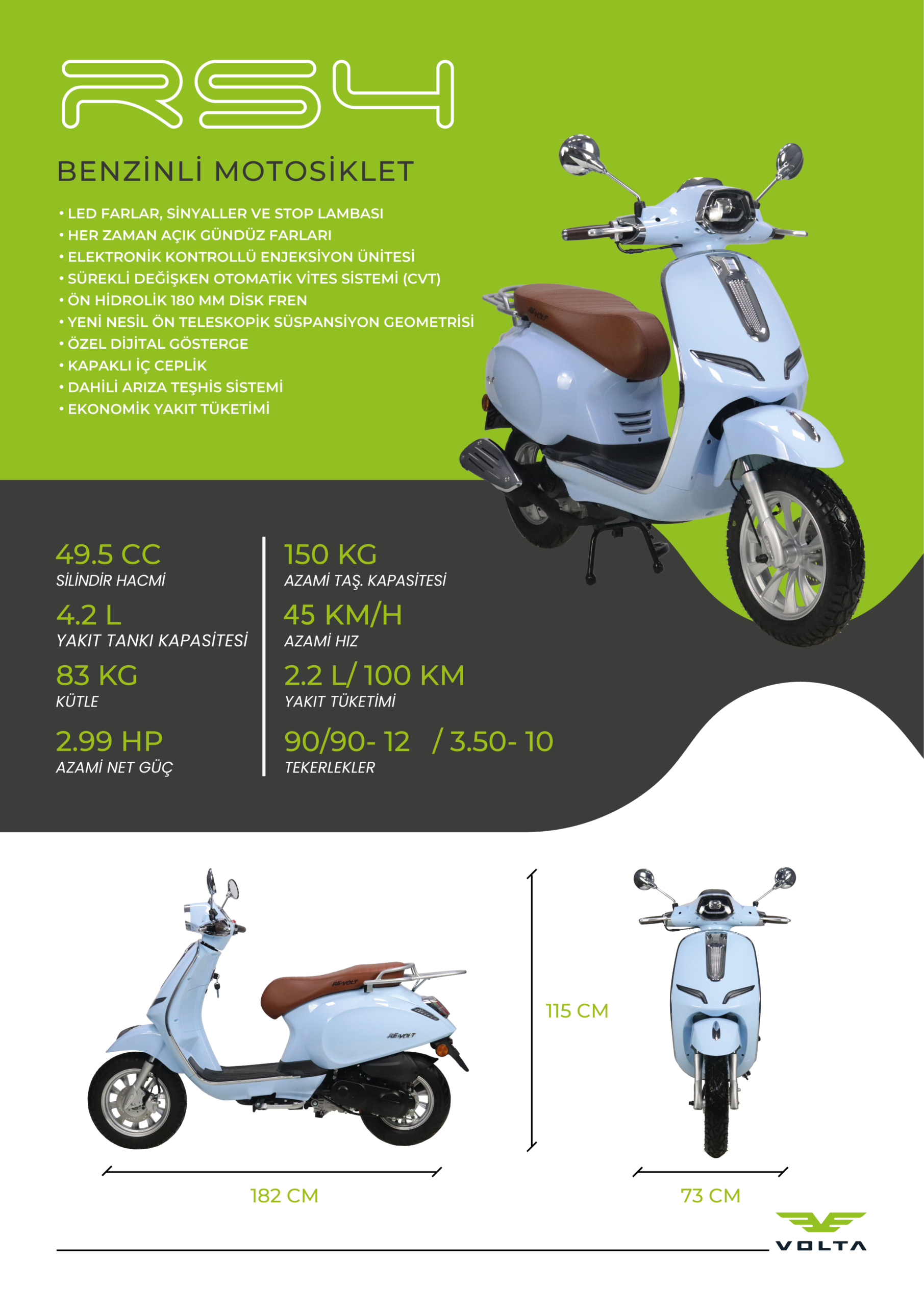 50cc motosiklet kategorisinde güvenilir, şık ve çevre dostu bir seçenek arayanlar için Revolt RS4 mükemmel bir seçimdir.