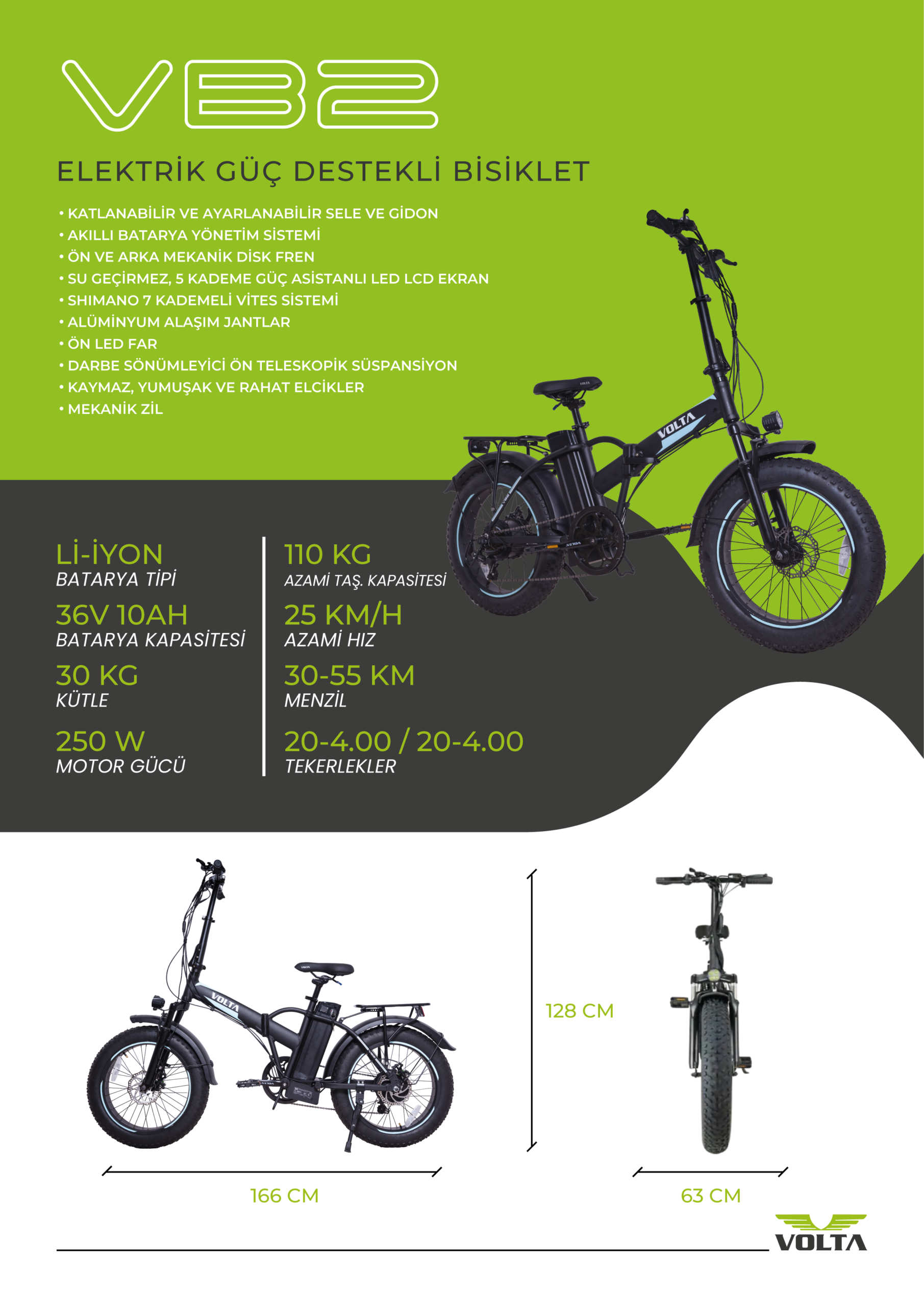Hem şehir içi yollarında hem de doğada yüksek performans arayan kullanıcılar için Volta VB2 elektrikli bisiklet, ideal bir çözümdür.