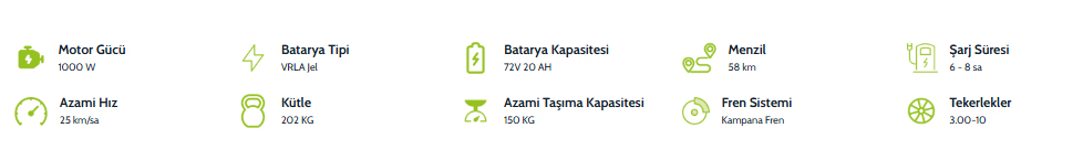 72V 20Ah VRLA Jel batarya ile donatılan bu model, tek şarjla 58 km’ye kadar menzil sunarak gün boyu kullanım imkanı sağlar. Düşük bakım ihtiyacı ve ekonomik şarj maliyeti ile VM5 Neo, çevre dostu ve sürdürülebilir ulaşım alternatifleri arasında öne çıkar. Şehir içinde hem konforlu hem işlevsel bir deneyim yaşamak isteyenler için VM5 Neo, akıllı ve etkili bir tercihtir.