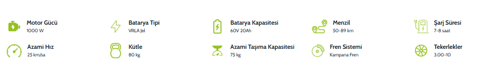 VRLA Jel tipi 48V 22Ah taşınabilir bataryası, tek şarjla 52 km’ye kadar menzil sunarak günlük kısa mesafeli yolculuklar için mükemmel bir çözüm sunar.
