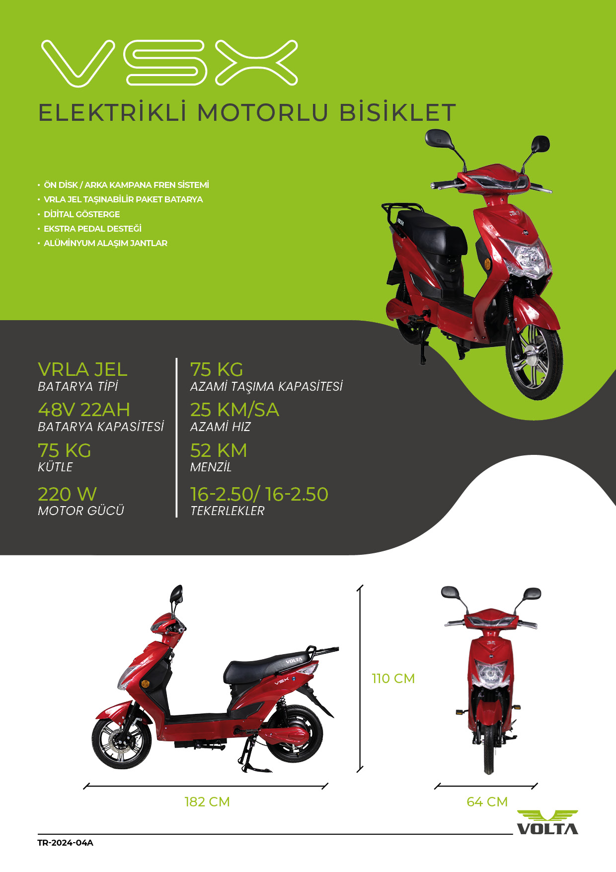 Elektrikli motor teknolojisiyle donatılmış olan Volta VSX, kullanıcılarına hem ekonomik hem de sürdürülebilir bir ulaşım deneyimi sunar.